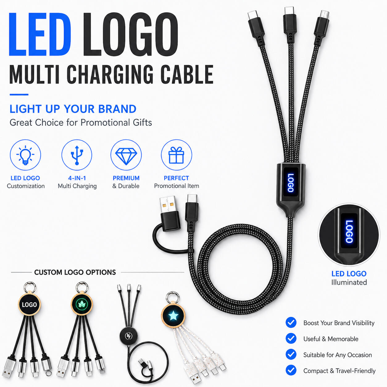 Illuminated cables that showcase your logo with every charge.