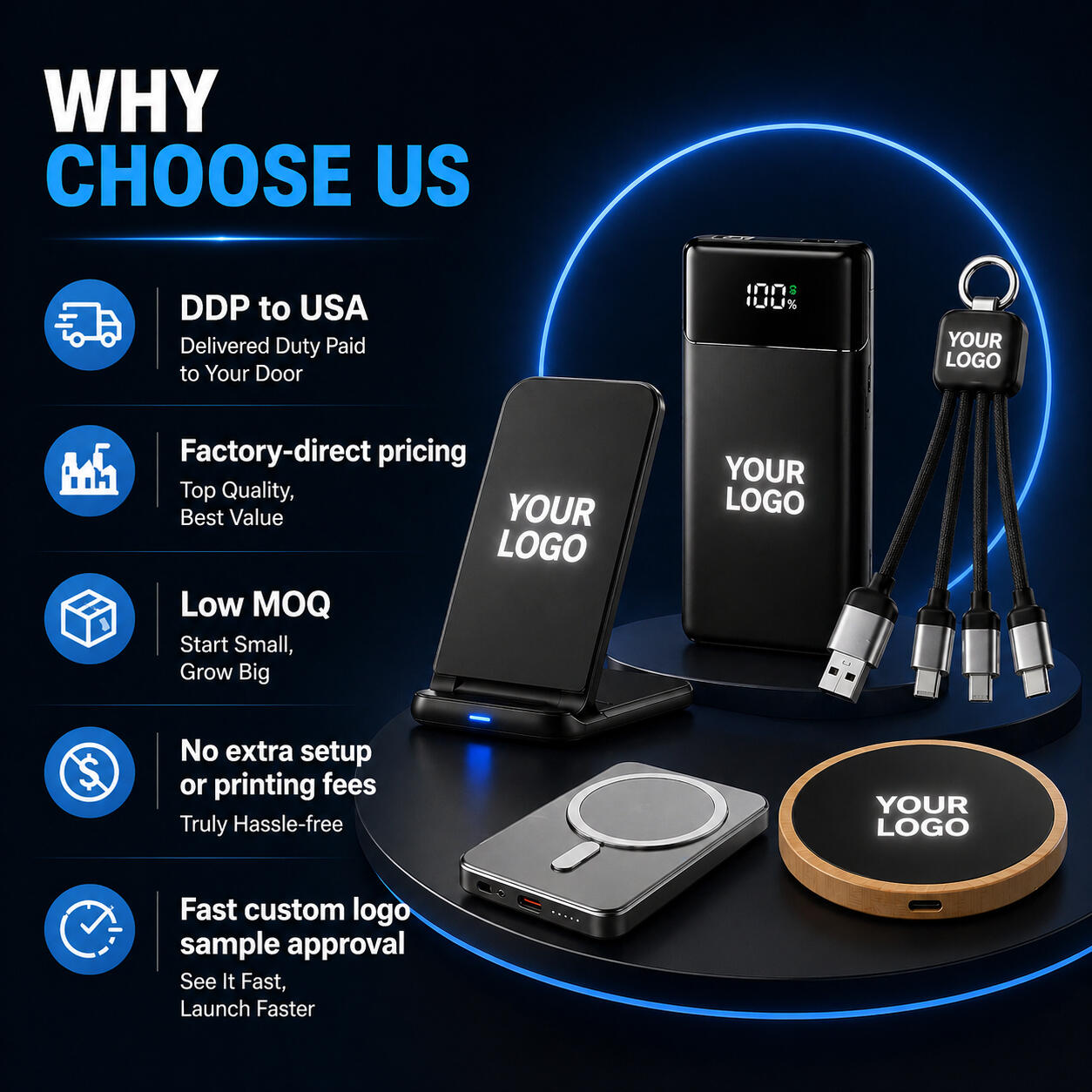 Illuminated cables that showcase your logo with every charge.
